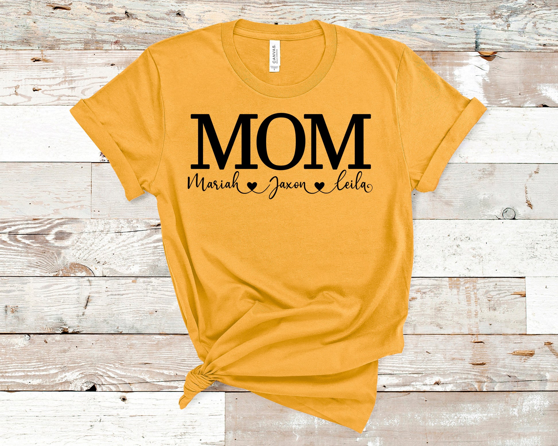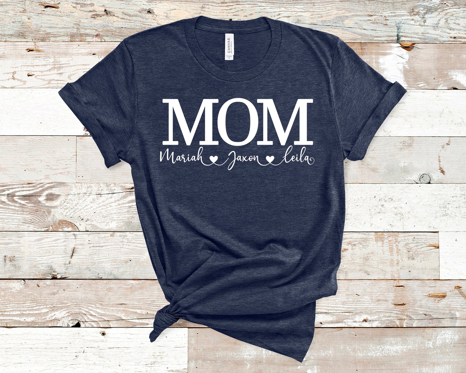 A beautiful shirt for any parent or grandparent, personalized with their children or grandchildren's names. It's a perfect Mother's Day gift. I can change the title to say whatever you'd like - Mom, Dad, Grandma, Aunt, etc.
