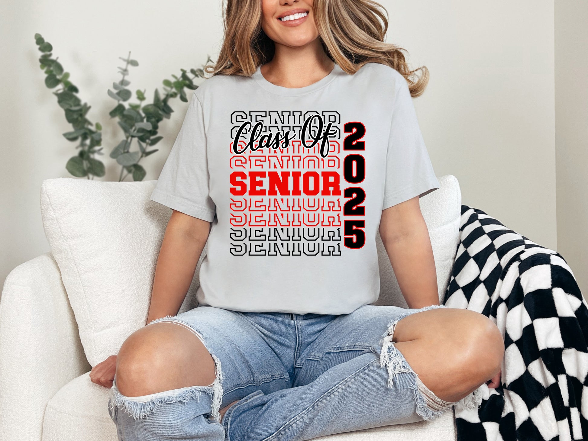 Here's the perfect shirt for the Senior graduate of 2025! I can customize it to align with your school colors. Make sure to take a look at the size chart to make your selection.